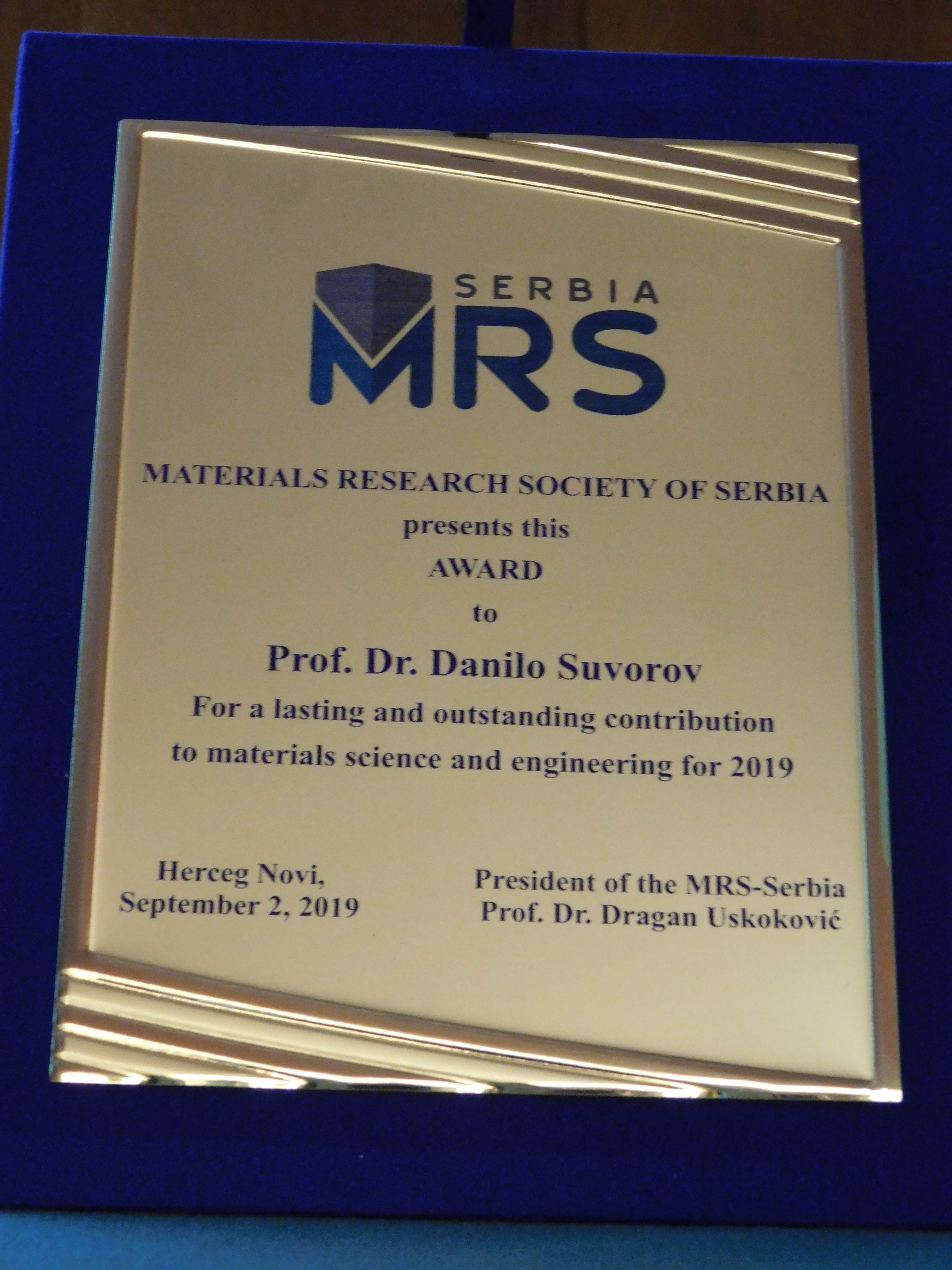 2025 MRS-Serbia Award for a Lasting and Outstanding Contribution to Materials Science and Engineering